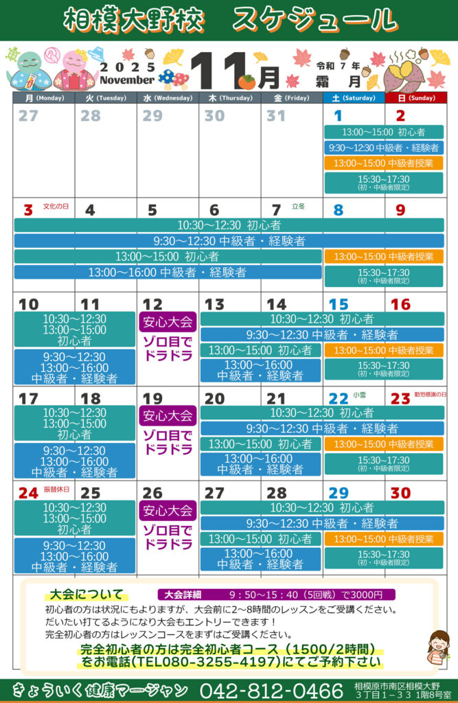相模大野校【11月実施: 中級クラスレベルアップ講座】🀄️