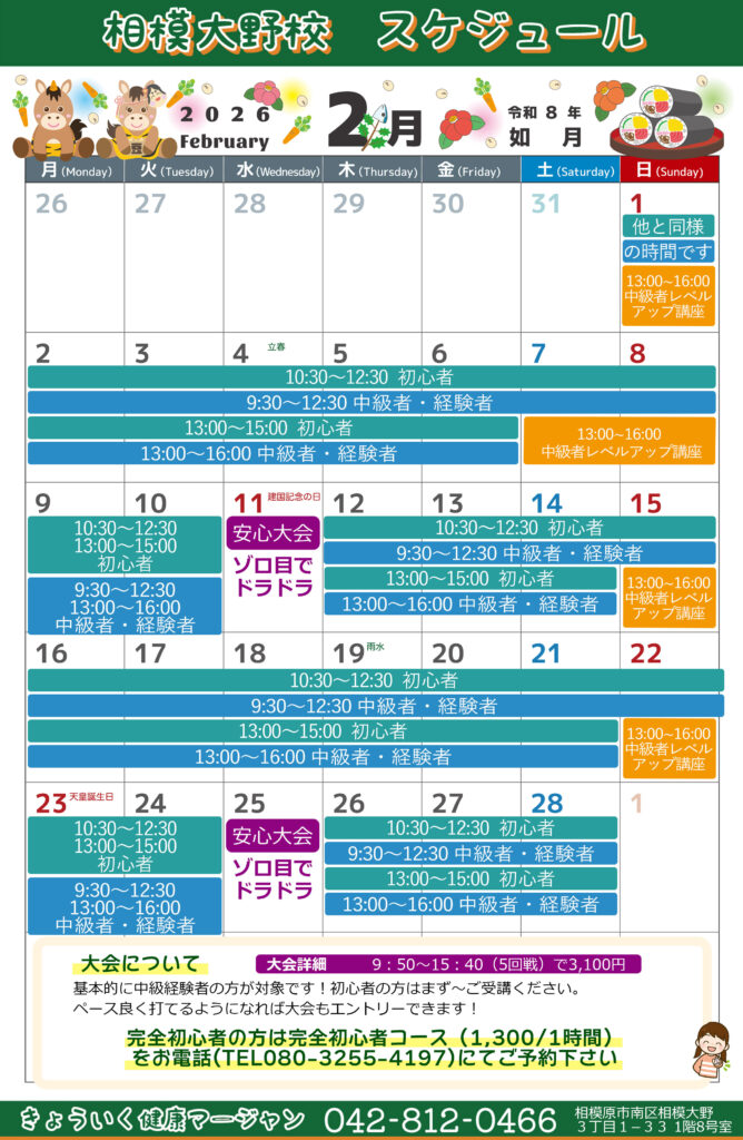 2026年2月相模大野校の予定